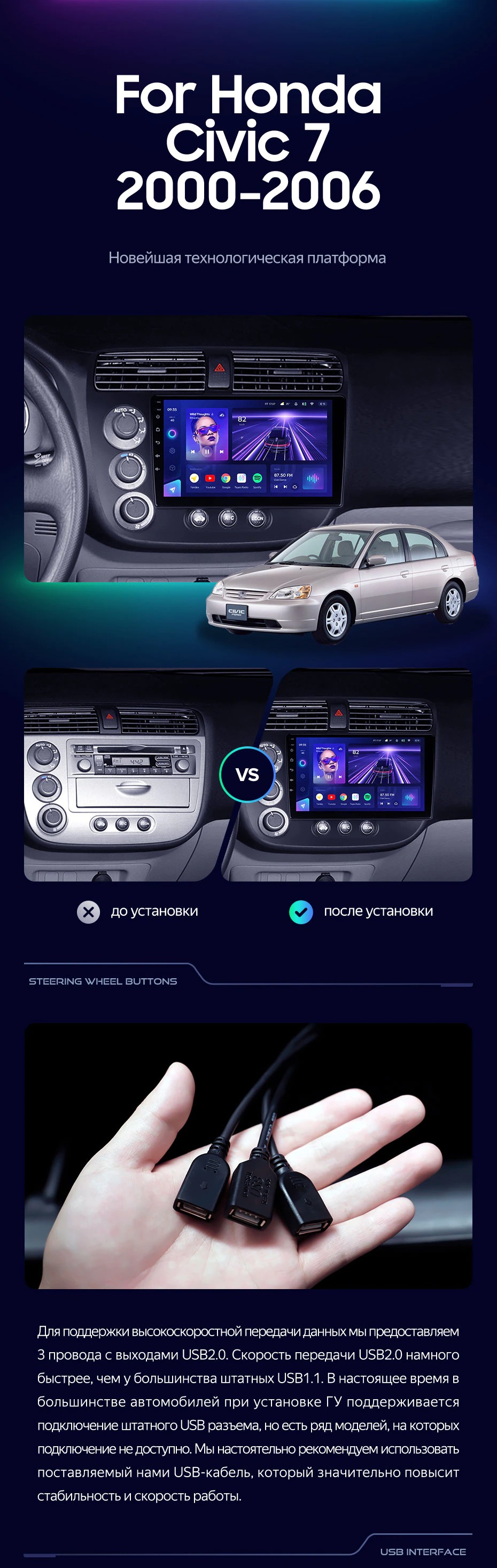 Штатная магнитола Teyes CC3 4/32 Honda Civic 7 (2000-2006) F1 - купить всего за 32 530 руб. в интернет-магазине в Нальчике Teyes.com.ru. ✓ Самый лучший выбор мультимедиа ✓ Лучшая замена штатному ГУ ✓ Тел. +7 (800) 775-31-74