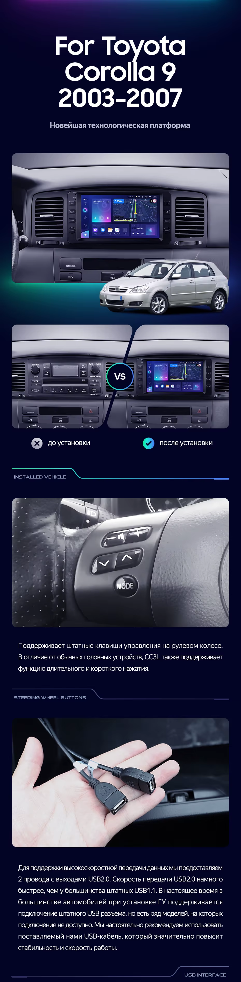 Штатная магнитола Teyes CC3L 4/32 Toyota Corolla 9 E120 E130 (2003-2007) 7" - купить всего за 28 300 руб. в интернет-магазине в Нальчике Teyes.com.ru. ✓ Самый лучший выбор мультимедиа ✓ Лучшая замена штатному ГУ ✓ Тел. +7 (800) 775-31-74
