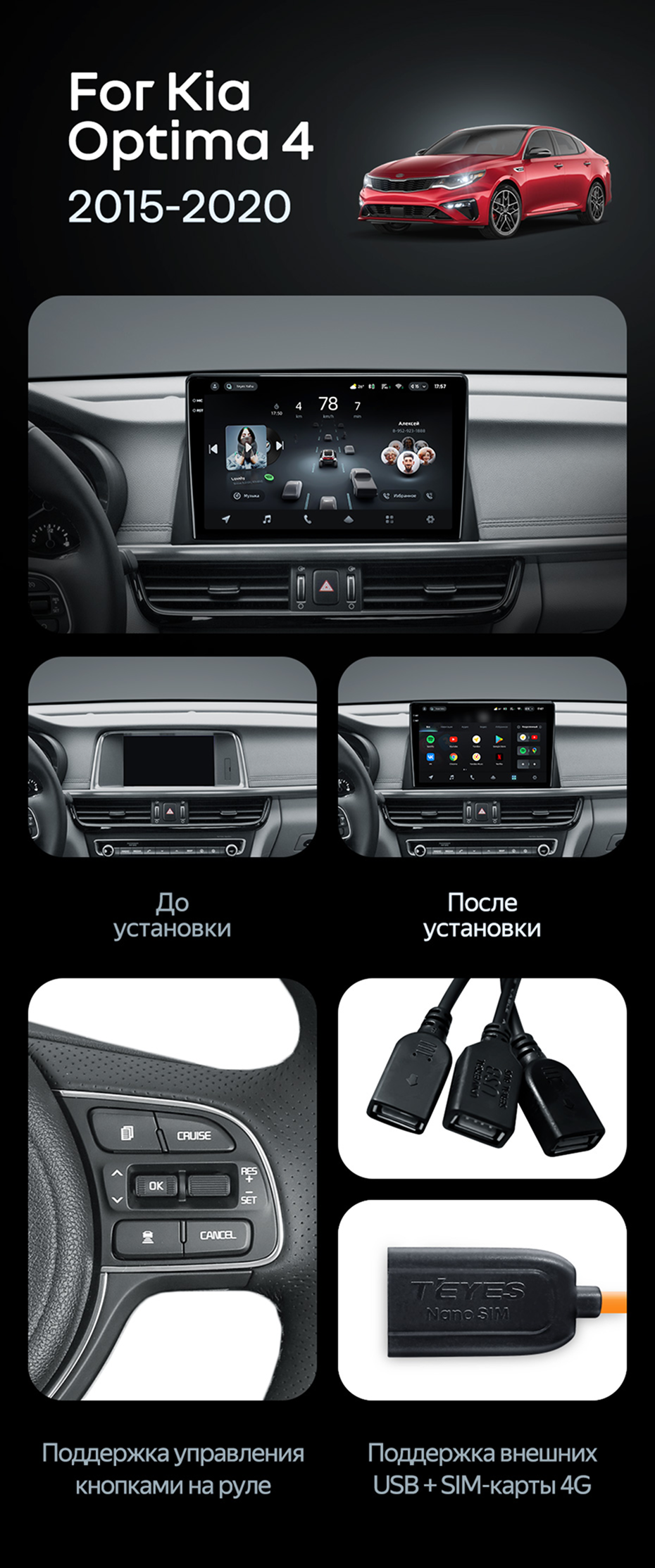 Штатная магнитола Teyes CC4 Pro 12/256 Kia Optima 4 JF (2015-2020) Тип-A - купить всего за 68 500 руб. в интернет-магазине в Нальчике Teyes.com.ru. ✓ Самый лучший выбор мультимедиа ✓ Лучшая замена штатному ГУ ✓ Тел. +7 (800) 775-31-74