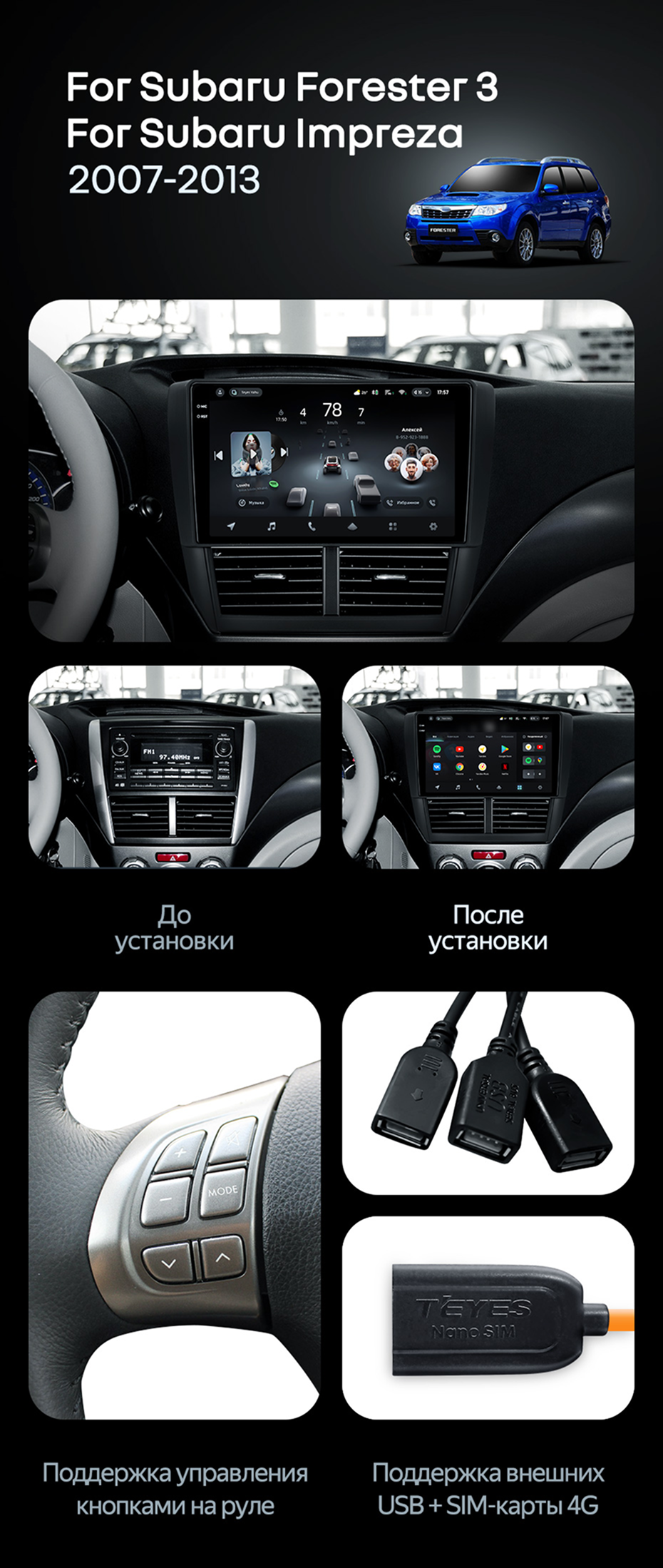 Штатная магнитола Teyes CC4 Pro 12/256 Subaru Forester 3 SH (2007-2013) - купить всего за 68 200 руб. в интернет-магазине в Нальчике Teyes.com.ru. ✓ Самый лучший выбор мультимедиа ✓ Лучшая замена штатному ГУ ✓ Тел. +7 (800) 775-31-74