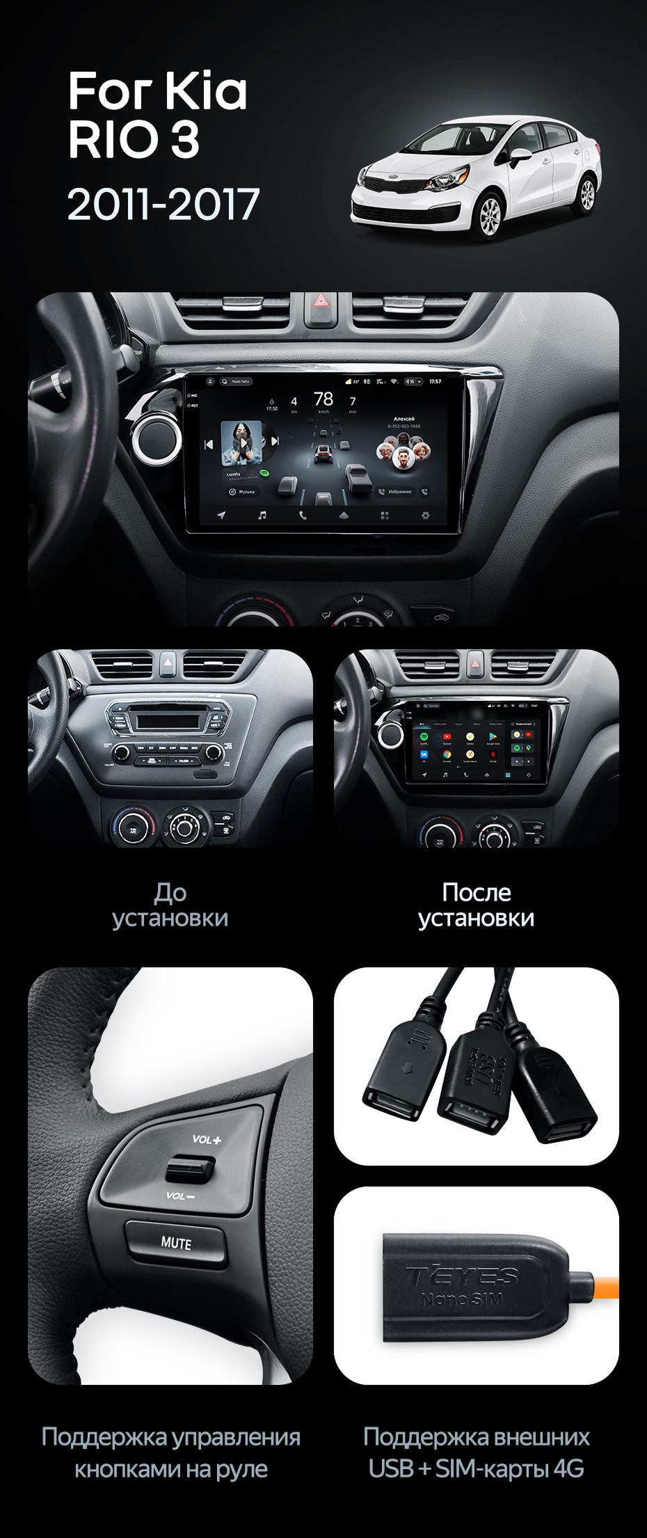 Штатная магнитола Teyes CC4 Pro 8/128 Kia Rio 3 (2011-2017) (13") - купить всего за 67 770 руб. в интернет-магазине в Нальчике Teyes.com.ru. ✓ Самый лучший выбор мультимедиа ✓ Лучшая замена штатному ГУ ✓ Тел. +7 (800) 775-31-74