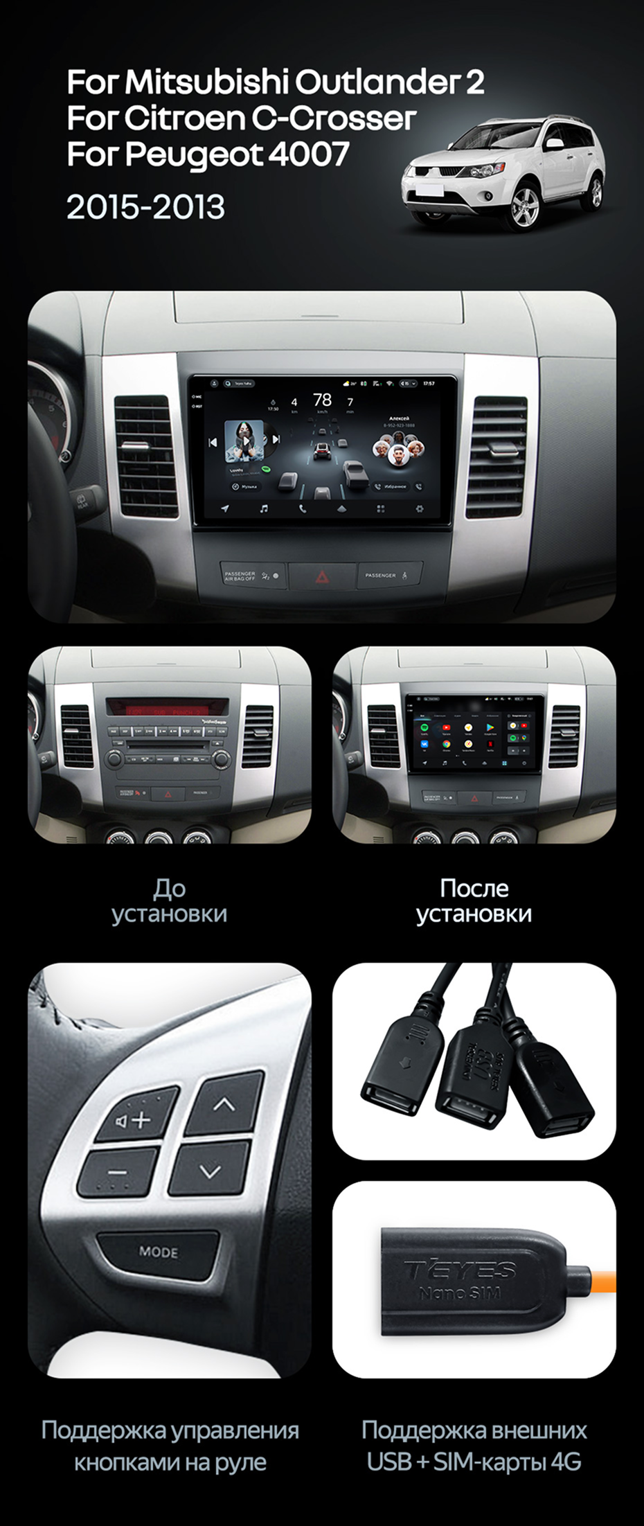 Штатная магнитола Teyes CC4 Pro 8/128 Mitsubishi Outlander 2 (2005-2011) Тип-B - купить всего за 59 650 руб. в интернет-магазине в Нальчике Teyes.com.ru. ✓ Самый лучший выбор мультимедиа ✓ Лучшая замена штатному ГУ ✓ Тел. +7 (800) 775-31-74