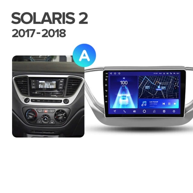 Полный комплект установки магнитолы Teyes с рамкой и проводкой можно выбрать в каталоге штатных магнитол Hyundai Solaris 2 (2017-2018).