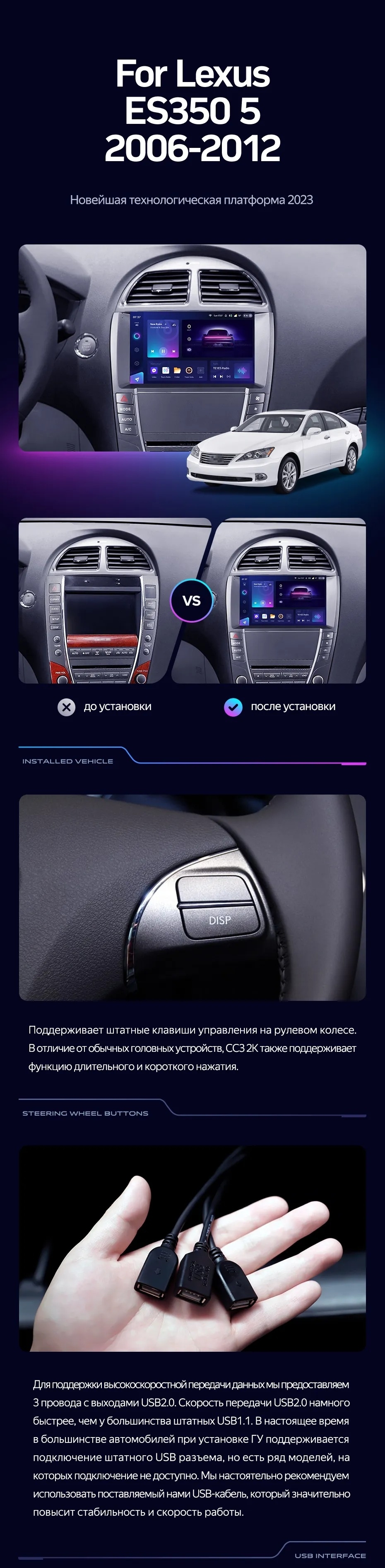 Полный комплект установки магнитолы Teyes с рамкой и проводкой можно выбрать в каталоге штатных магнитол Lexus ES350 5 XV40 (2006-2012) (АB).