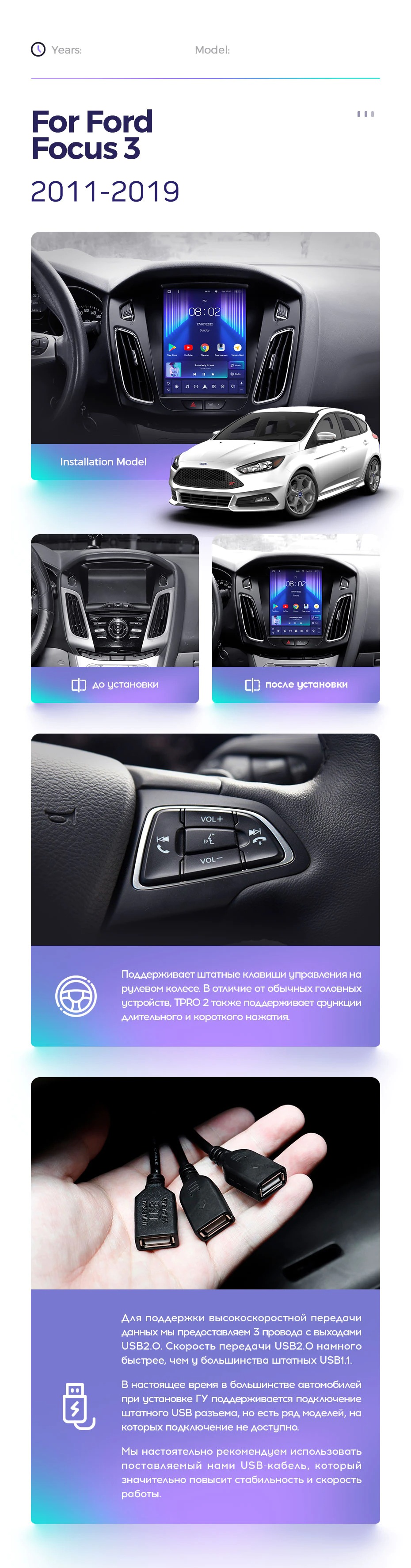 Полный комплект установки магнитолы Teyes с рамкой и проводкой можно выбрать в каталоге штатных магнитол Ford Focus 3 Mk 3 (2011-2019).